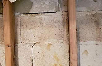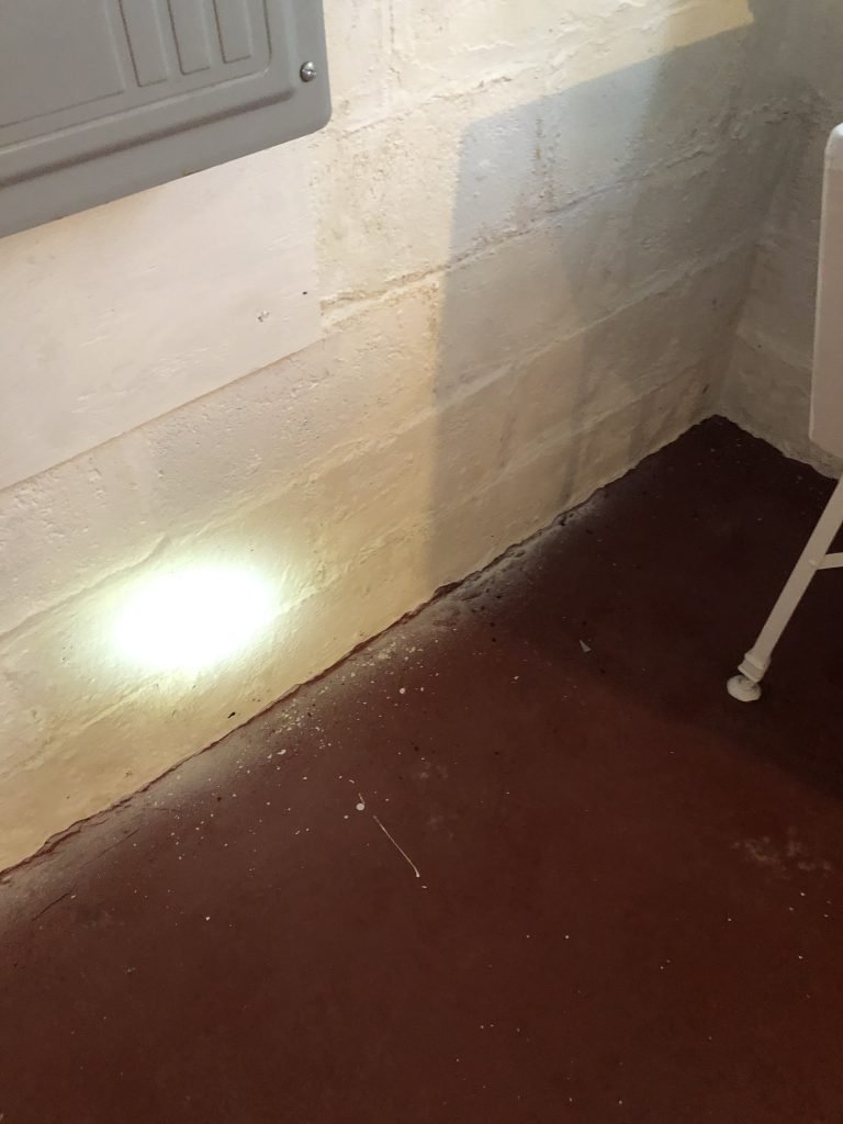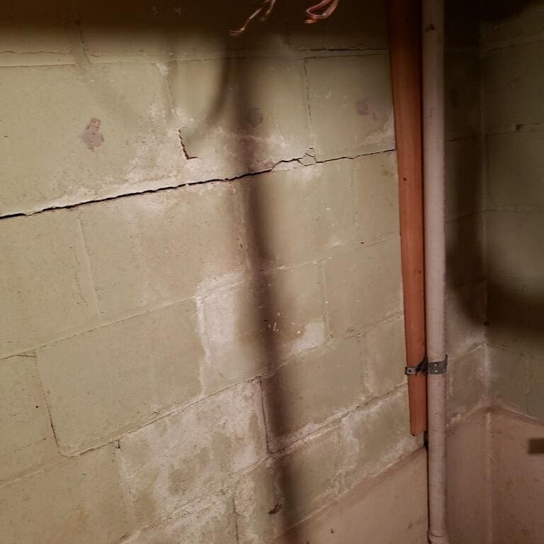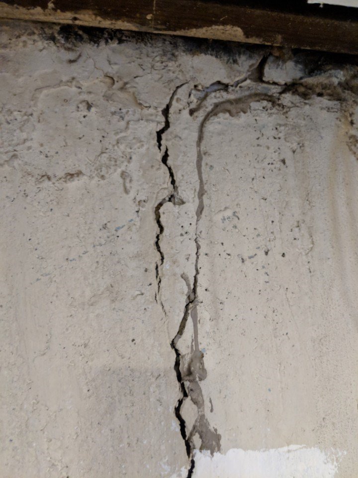Checking for if the foundation walls have any cracks. There are three types of cracks we are looking for vertical, stairstep, or horizontal.