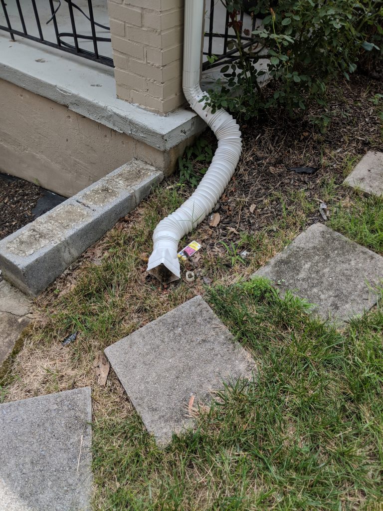 How far the downspouts extend away from your home is very important. During a waterproofing inspection, we check the water that discharges from the downspout. Is the water flowing away from the foundation?