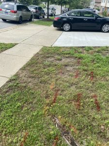 Before digging, we must have notified MISS Utility, who marks where the water, sewer, gas, electric, cable, and FiOS lines are buried underground. MISS Utility has 72 hours to mark the lines once the ticket is opened for their services. Please ensure that MISS Utility has access to your yard’s front, back, and sides. The yard should be pet-free (unless supervised) during the 72-hour window.